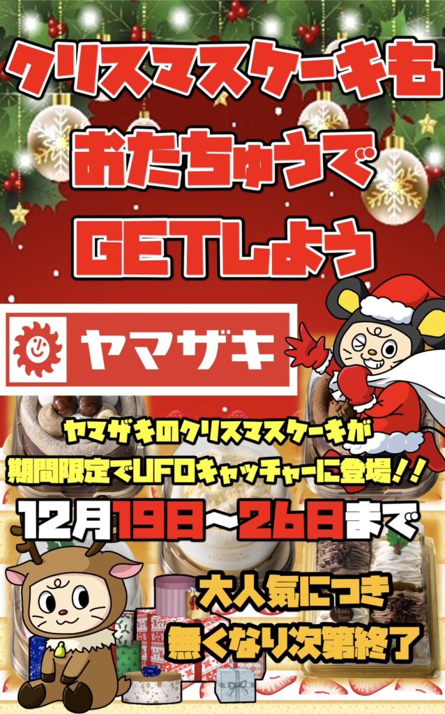 ★イベント情報★ 12月19日〜26日UFOキャッチャーの景品にヤマザキのクリ…