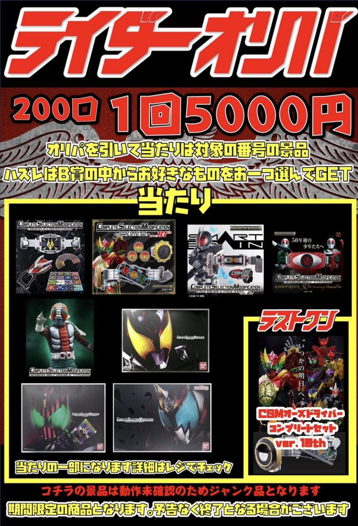 仮面ライダーオリパが発売中!! CSMがお得にGET出来るかも!? 外れて…