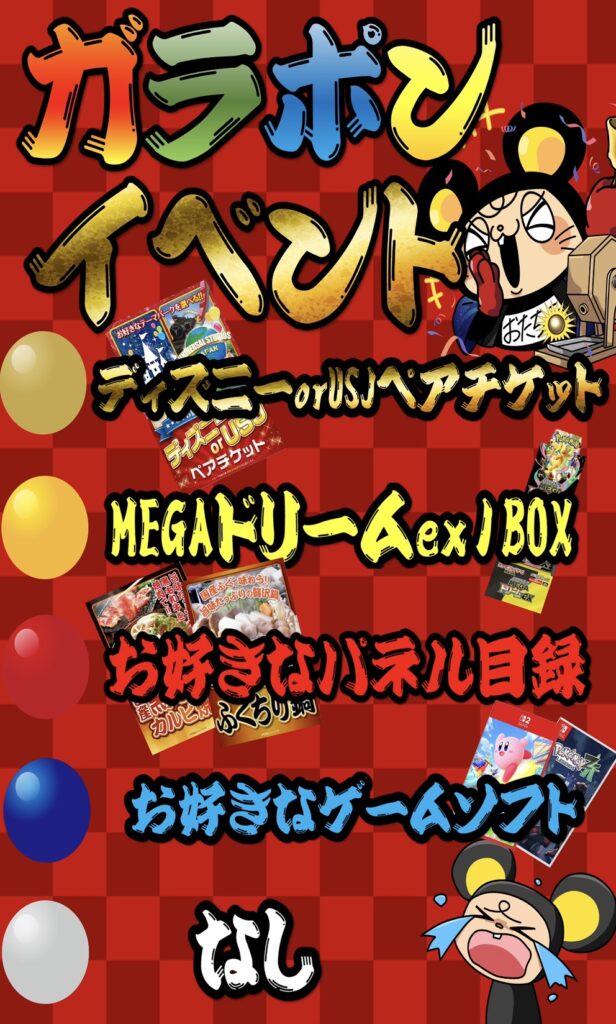金の玉が出るとディズニーorUSJペアチケットが出来るガラポンイベント…