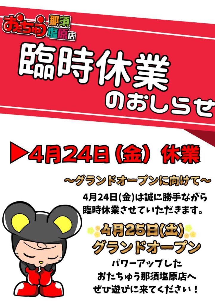 お客様各位 グランドオープン日のお知らせ! いつも当店にご来店いただ…