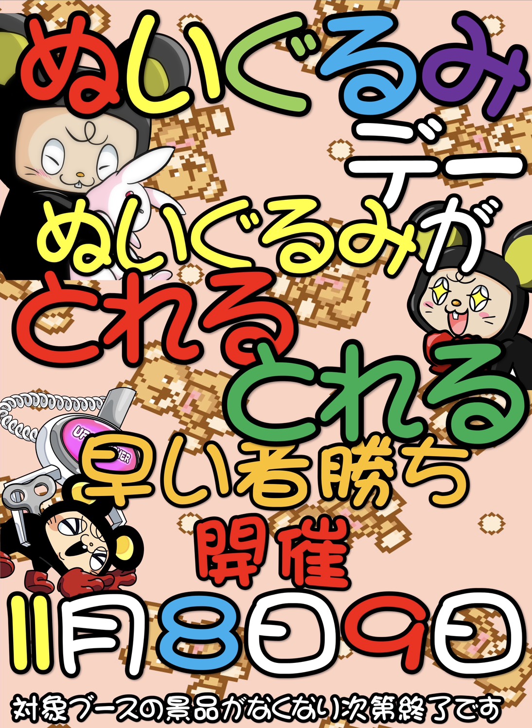 対象ブースの景品が無くなり次第終了となりますご了承ください